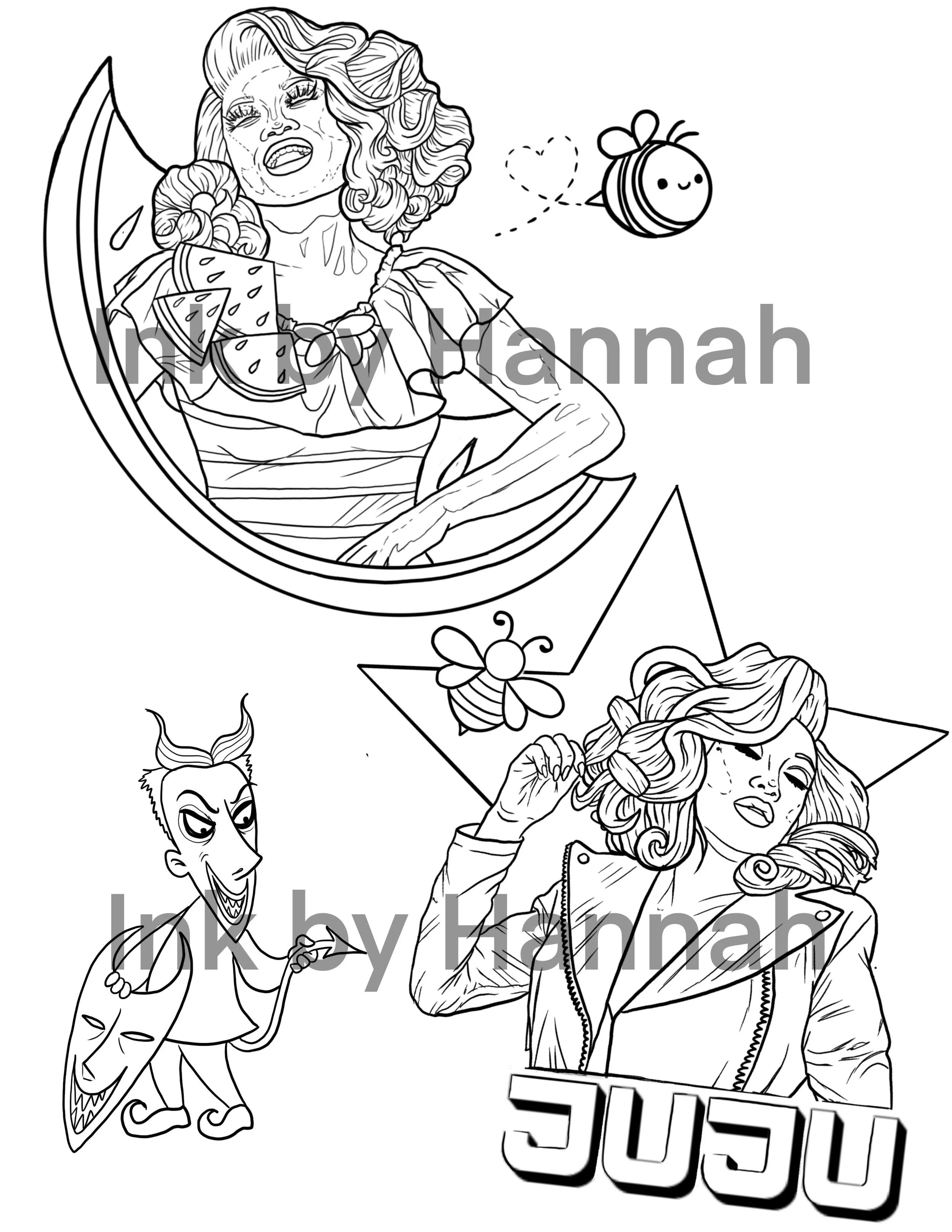 $100 outline, $150 black and grey, $200 color. One free reroll if you don’t like first one picked but that’s it. Will be adding more designs when added.